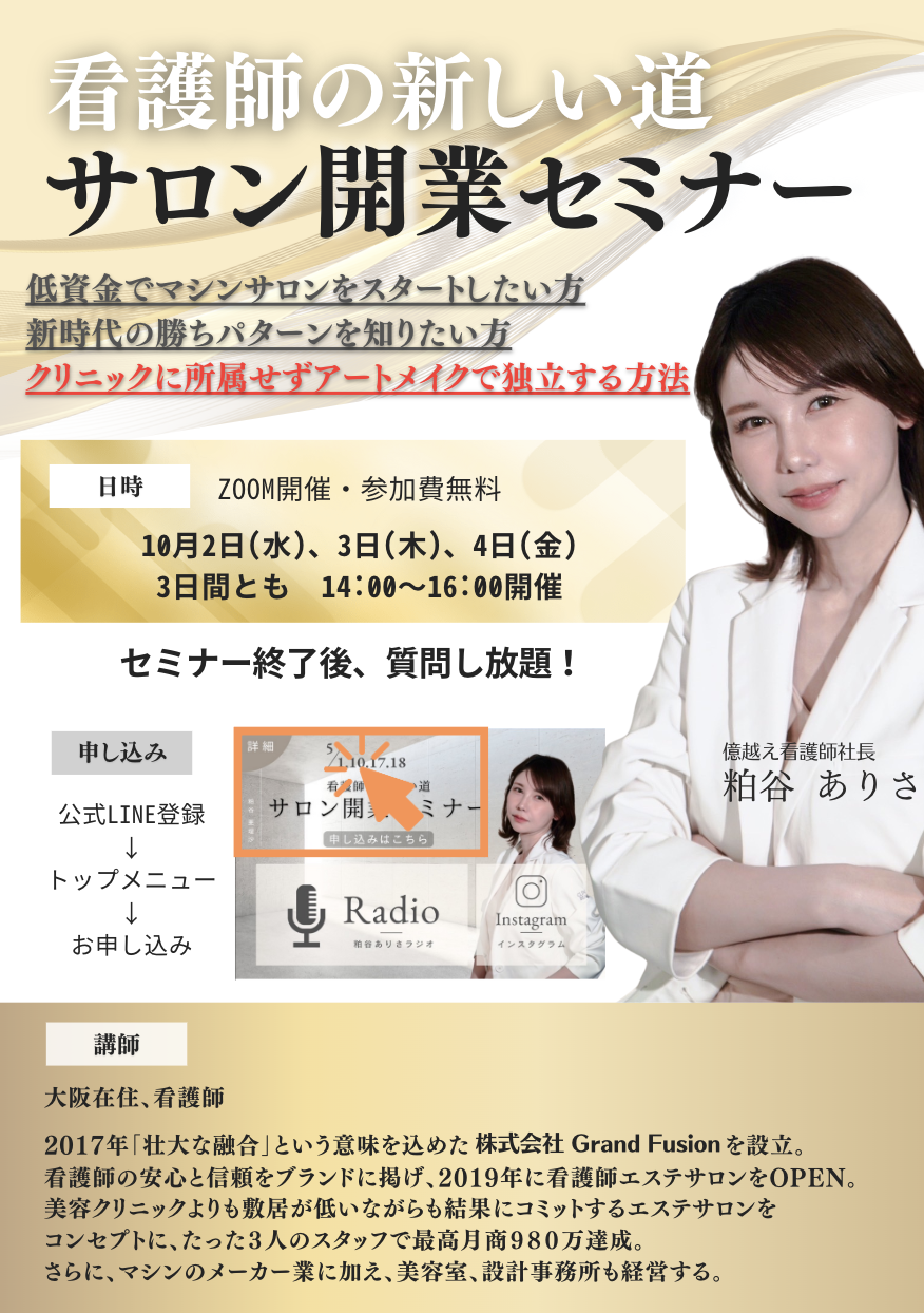 看護師として12年間働き、子育てとフリーランスを経て2017年「壮大な融合」という意味を込めた株式会社GrandFusionを設立。